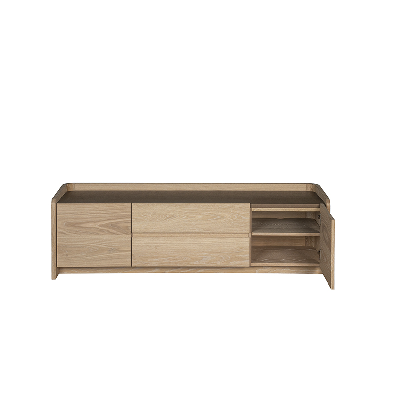 With its eye-catching design, Laguna Media Console becomes the focus point of any living space, providing ample storage with two doors and two drawers. The combination of oak and leather surface heightens the media console’s natural beauty.