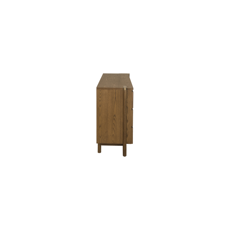 Meticulously crafted with intricate details, the Montaro Dresser reflects high-skill artistry and exceptional craftsmanship. Designed to transcend the challenges of time and trends, it features six spacious drawers for storing cherished belongings. The luxurious brass accents create a striking contrast against the rich wood finish, making this dresser a perfect harmony of warmth and modern elegance.