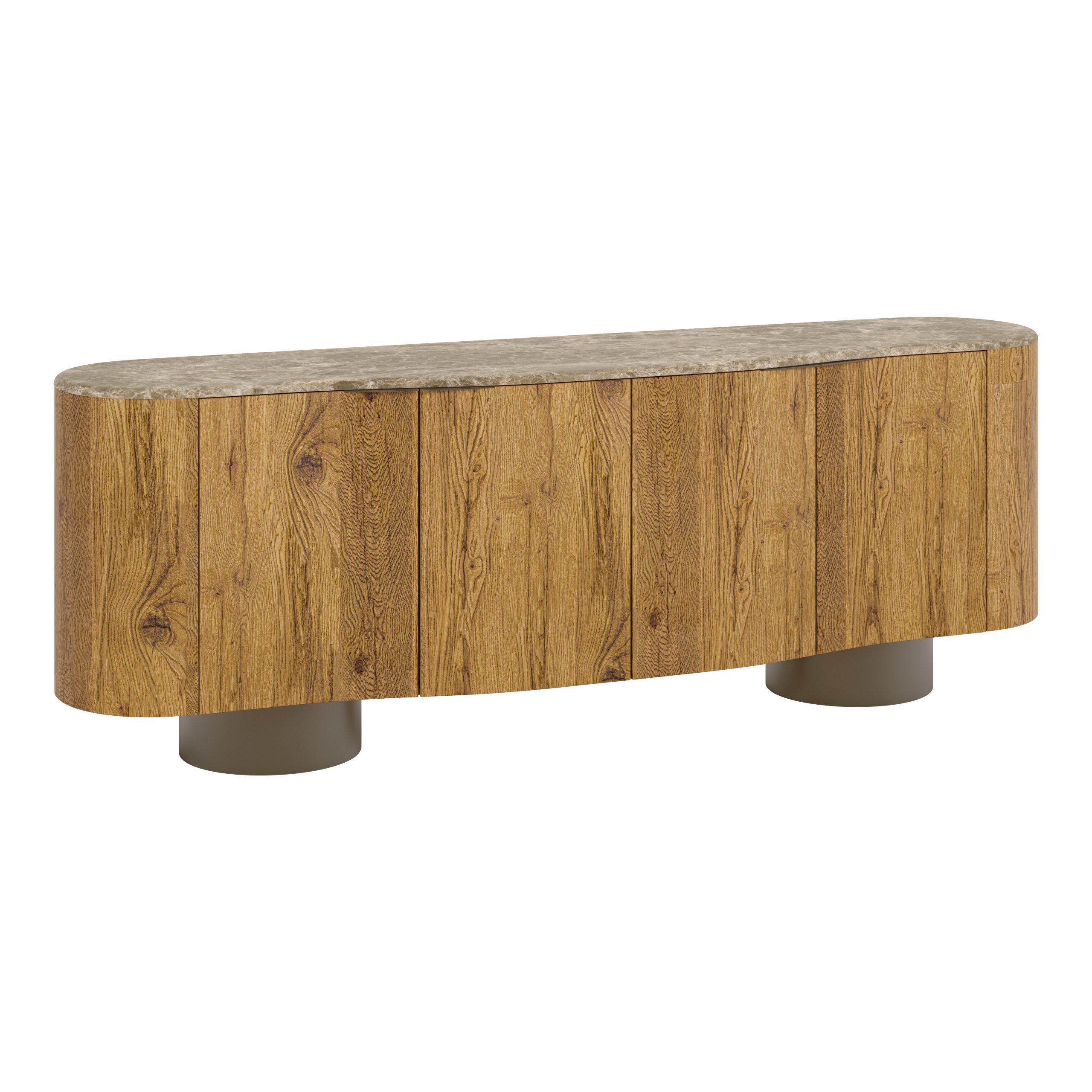 Gracefully curved doors and a marble-topped oak body define this commanding yet fluid piece. Supported by strong metal legs, the Velutto 4 Door Sideboard merges organic warmth with architectural clarity. Designed for both function and form, it elevates storage into a centerpiece of modern living.