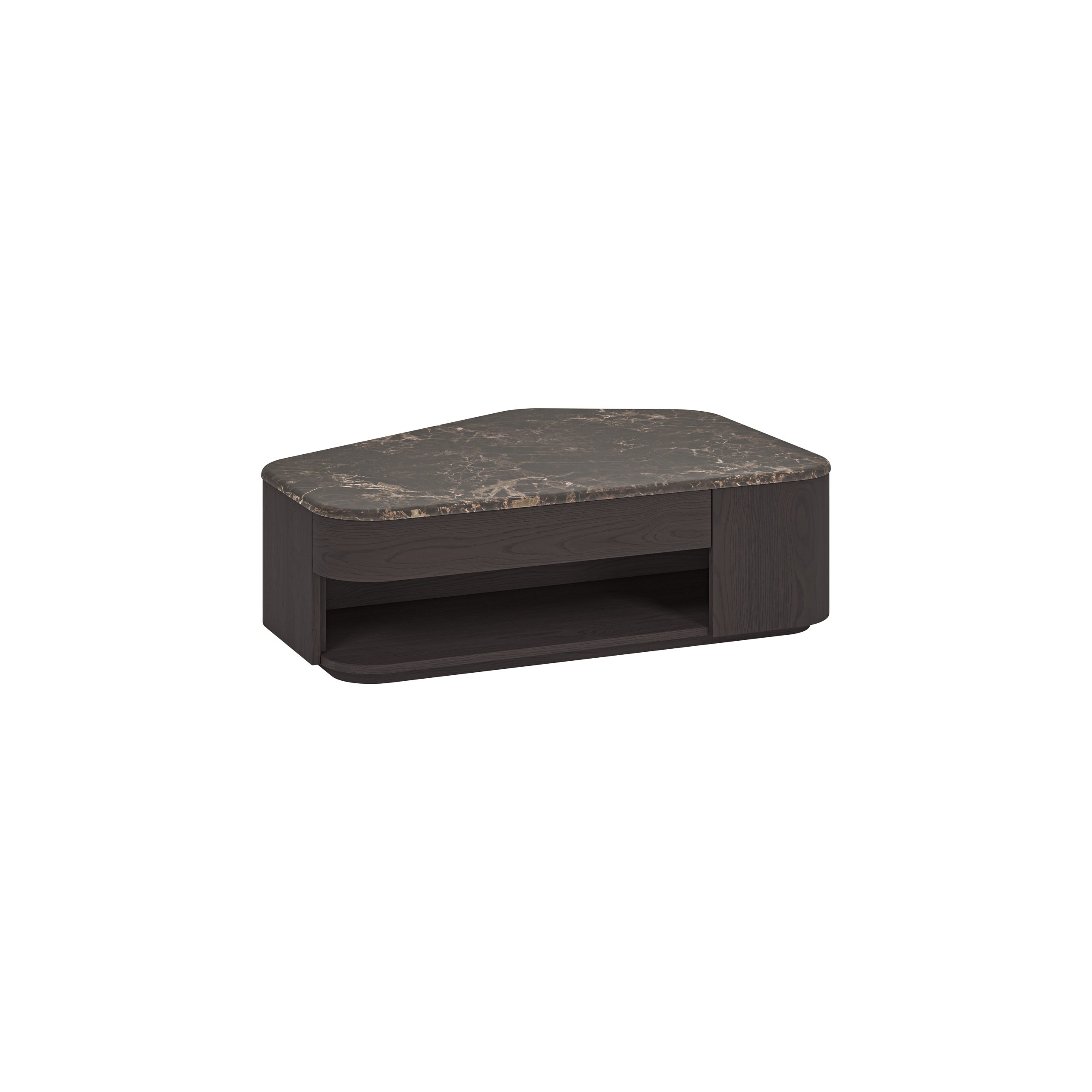 The Cosimo Coffee Tables translate bold, angular geometry into refined composition of wood and Emperador marble. Available in two sizes, the Cosimo Large Coffee Table features an integrated drawer within its sculpted base, while the Cosimo Small Coffee Table carries the same architectural language in a more compact form
